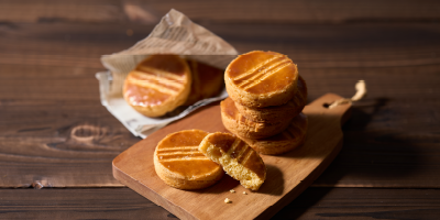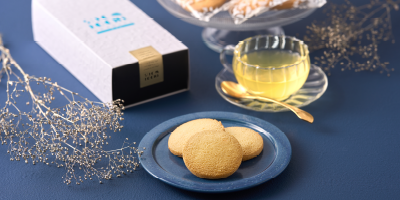 風味豊かなフランス産発酵バターと2種類の小麦粉を使い、よりサクサクした軽い食感にこだわりました。希少な烏骨鶏卵の濃厚さでコクや風味が増し、きめの細かいまろやかなぬちまーす塩が 甘さを引き立てています。(食塩中にぬちまーすを8%使用)