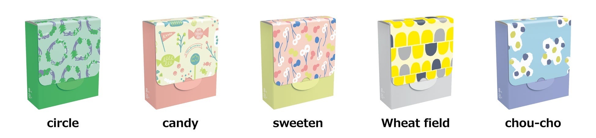 「Sweeten Style」はカンロの創業110周年を記念し、お客様への感謝を込めて2022年11月に発売した商品です。「“日々の生活にひと味の彩り”を与える」をテーマに、思わず飾りたくなる可愛らしいパッケージデザインにこだわりました。グラフィックデザイナーのセキユリヲさんのデザインを採用し、110周年を記念した特別デザインの<circle>、<candy>、<sweeten>の3種に加え、<wheat field>、<chou-cho>の2種の計5種類をラインナップしています。