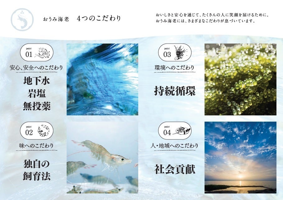 当社は、自然豊かで歴史と文化の町である滋賀県長浜市に拠点を置き、これまでプリント基板などの電子機器の製造や電子部品の組み立てなど、日本の各種産業の発展に貢献してきました。安心安全な製品を作る製造業の立場で日本を取り巻く食糧事情に触れると、輸入される食材の中には環境破壊の要因となっているものや、過剰な薬剤使用による危険性等の懸念が存在することに気づきました。そこで、これまで製造業で培った考え方や取り組みを活かした国産で安心安全な食品を当社から作り出したいと考え、2020年からバナメイエビの養殖、販売事業を展開しております。