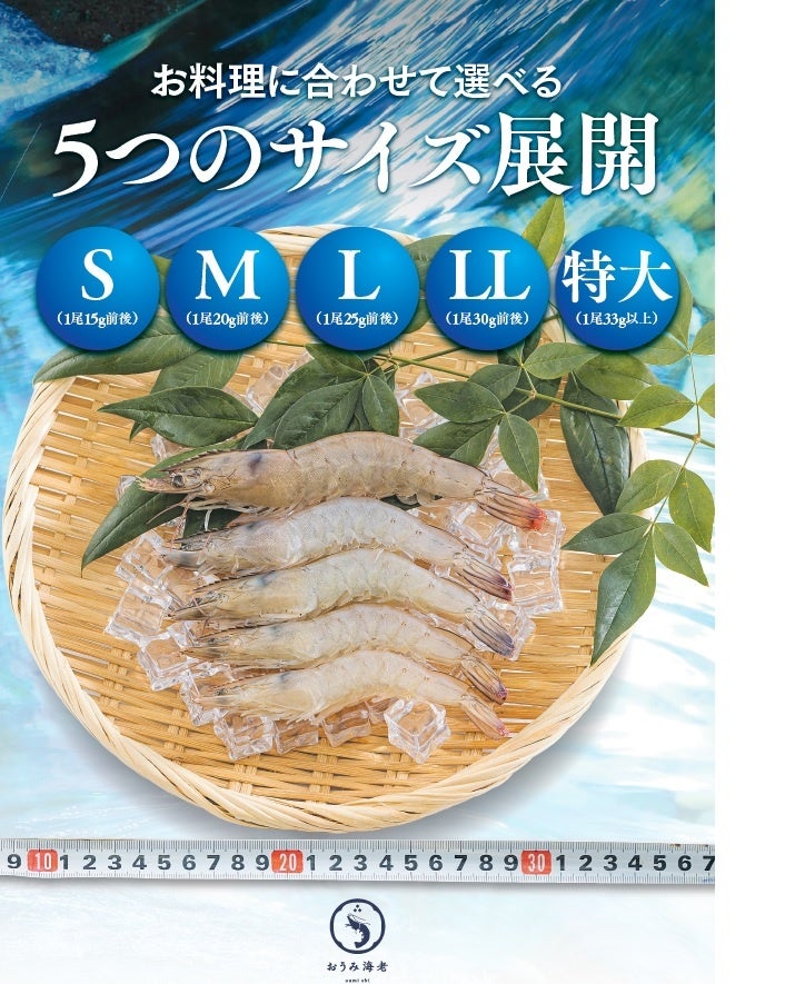 海の無い滋賀県から、世界一安心・安全でおいしい海老を目指し養殖された、サスティナブルな純国産バナメイエビです。滋賀県・伊吹山系の地下50mから湧き出る地下水と、マイクロプラスチックなどを含まない岩塩を投入した人工海水で、抗生物質や薬品を一切使わず国産の配合飼料を与え4か月間丁寧に育て上げることでバナメイエビの品質を高級海老のグレードまで高めました。活〆急速冷凍で鮮度抜群のままお届けしますので、解凍後生食が可能です。200gごとの小分けパックで使いやすいので、幅広いニーズに対応できます。