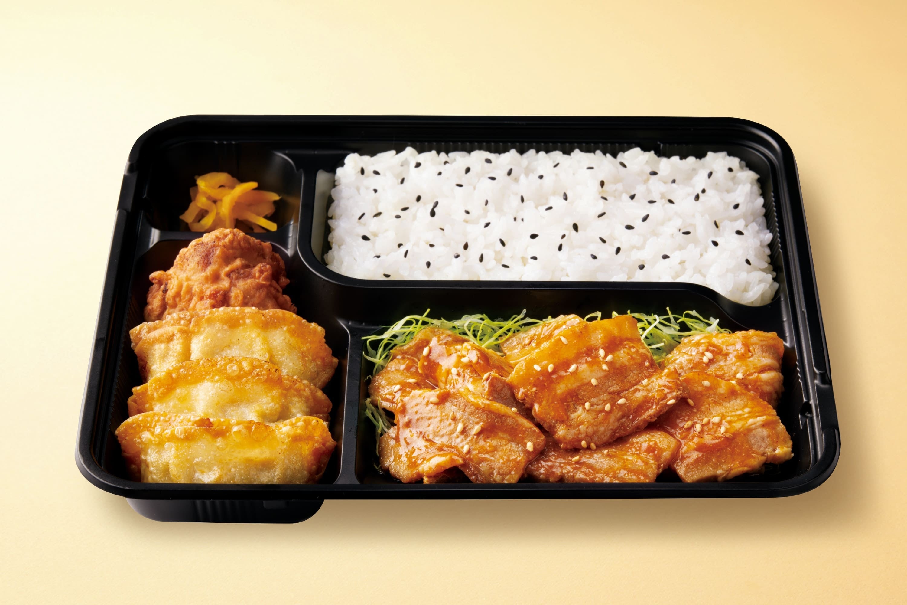 ※揚げ餃子と若鶏のこだわり醤油唐揚げとセットになった「スタミナ旨辛だれ豚弁当」もご用意しております。