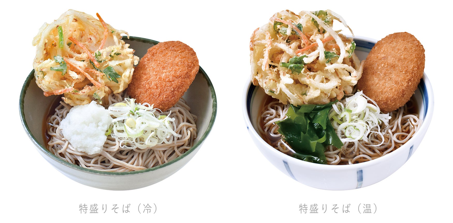 8月26日(土)~28日(月)の3日間はオープニングキャンペーンとして、人気のツートップであるかき揚げ天とコロッケ(カレー味)をトッピングし、麺を1.5玉に増量した『特盛りそば』を620円で販売いたします。箱根そばを代表する味を一度にご賞味いただけますので、是非この機会にご利用ください。