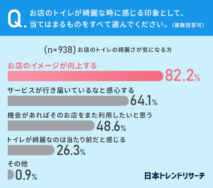 トイレの清潔さは、お店の重要なリピート率に大きく関わってくるという結果になりました。