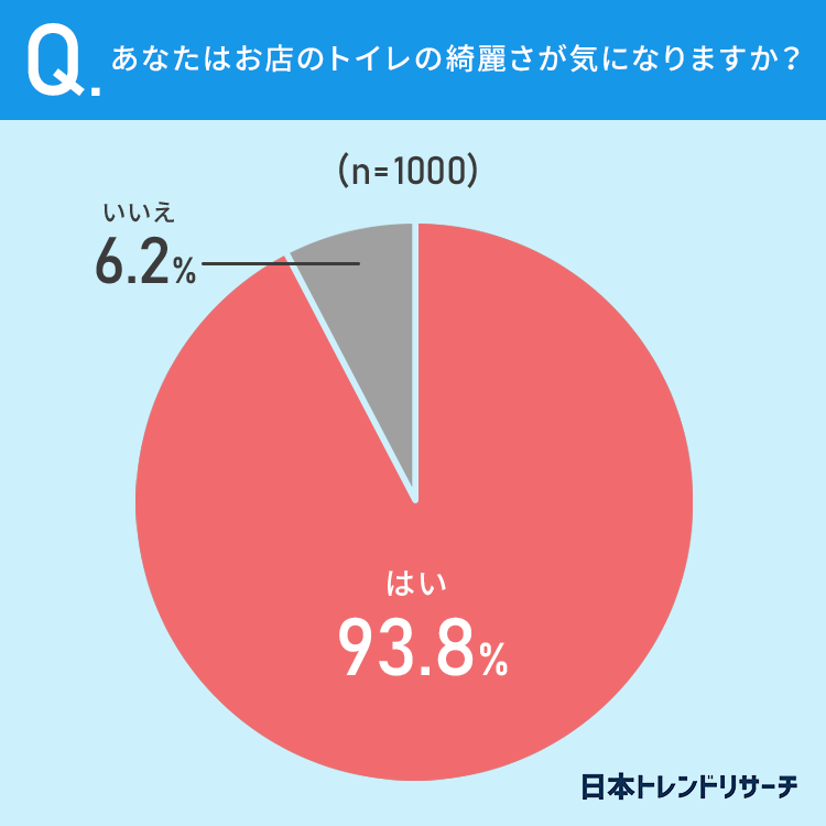 93.8%と、ほとんどの方が「お店のトイレの綺麗さが気になる」と回答しています。