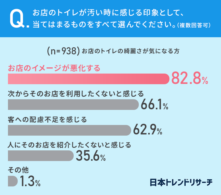 やはり、トイレの不潔さは店への不信感に直結するようですね。