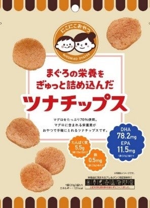 「まぐろの栄養をぎゅっと詰め込んだツナチップス」は、まぐろを70%使用し、DHAやEPAなどのまぐろに含まれる栄養素を詰め込んだツナチップスです。