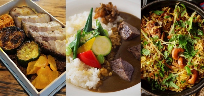 サンラサーのスペシャリテ、氷温熟成氷室豚を贅沢に使用したスパイス弁当。熟成した豚バラ肉の甘みのある脂に合わせたシンプルなスパイス使いのチキンキーマカレーと船橋三番瀬の香り高い海苔を使用し、肉とカレーのどちらも引き立てるバランス感覚はサンラサーの真骨頂です。