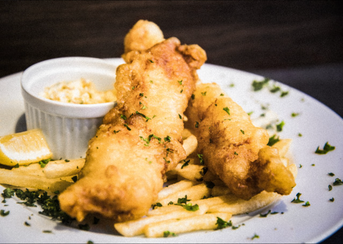フィッシュ&チップス、シェイク、フリット、アルコール飲料等。 一部メニューを除き、テイクアウト可。 |