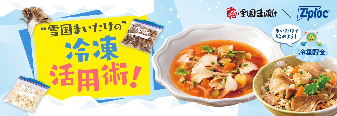 そこで今回、消費者の課題解決として、きのこメーカーである雪国まいたけと、旭化成ホームプロダクツがタッグを組み、ジップロック®フリーザーバッグを使用した、まいたけの保存方法や、冷凍まいたけを活用したメニューなどをご提案致します。