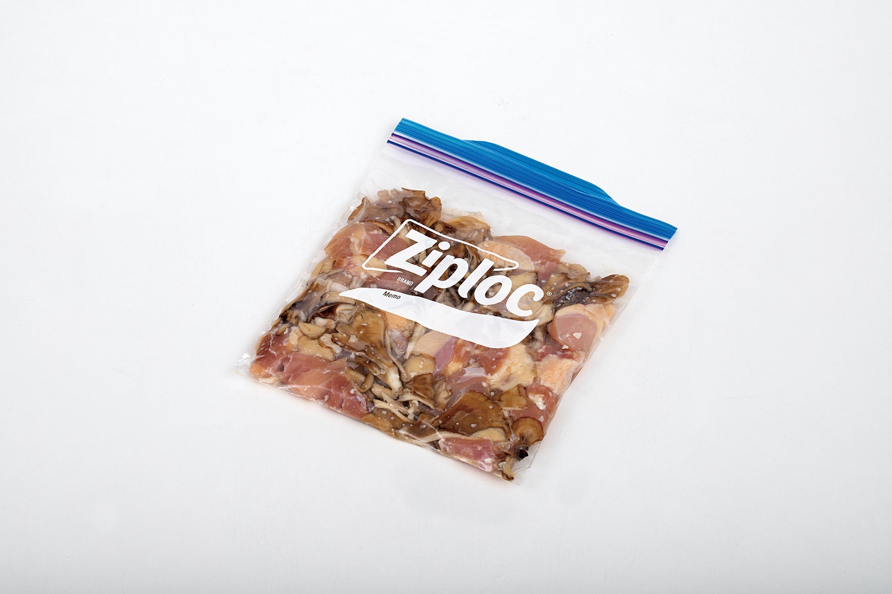 ■まいたけと鶏肉の塩麴漬け 下味冷凍イメージ(ジップロック®フリーザーバッグ Mサイズ使用)