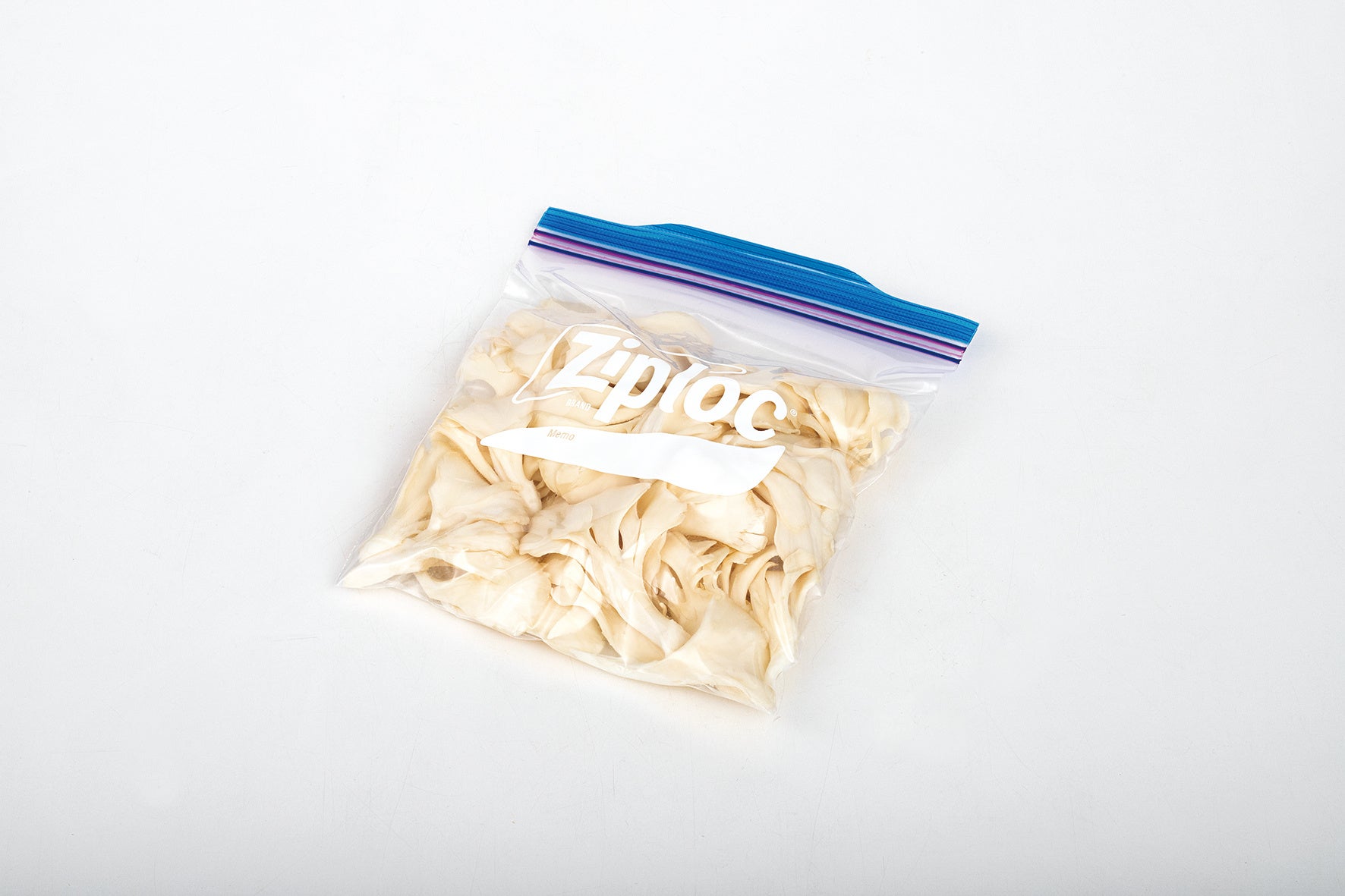 ※ジップロック®フリーザーバッグ Mサイズには、約200gのまいたけを保存可能です。