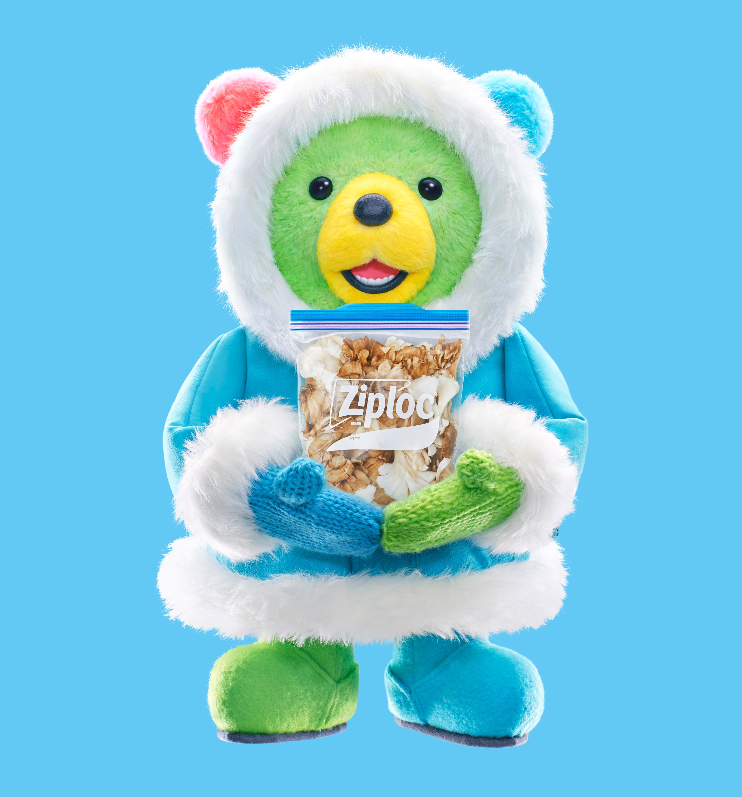 ※今回、「冷凍貯金」公式キャラクター「れいちょクマ」が、『ジップロック®フリーザーバッグ』を活用した『雪国まいたけ極』を冷凍訴求する特別な立ち絵も公開︕