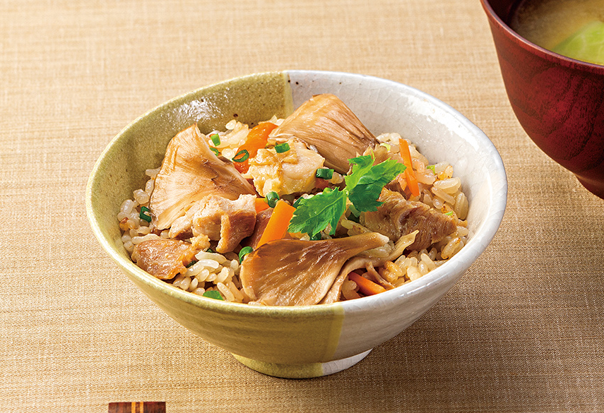 「まいたけと鶏肉の塩麴漬け炊き込みご飯」