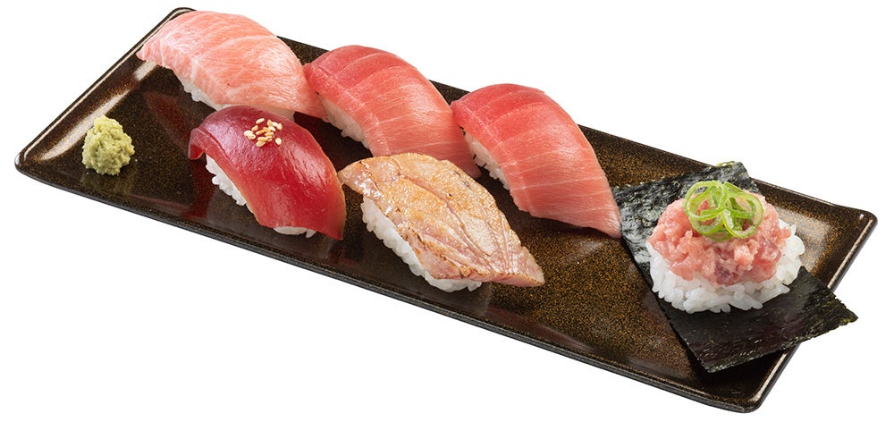 8月2日(水)より開催している『夏得祭』は、「超大切りキハダまぐろ」や、定番商品として人気の「特ネタ中とろ」が期間限定で一番お手頃な“黄皿”で登場する、大変お得なフェアです。お盆明けの8月17日(木)からは、幅広い世代のお客さまに、お得におすしからサイドメニューや、ドリンクまでをお楽しみいただきたいという想いから4商品を対象に100円引きで販売いたします。対象となるのは、「天然インド鮪6貫盛り」、「フライドチキン(5個)」、「気まぐれトリプルアイス/シャーベット」、「レモンサワー」です。「天然インド鮪6貫盛り」は、天然インド鮪の大とろ、中とろ、中とろ焦がし醤油、赤身の漬け、ねぎまぐろの包みで食べ比べできる一皿です。南の鮪の王様とも称され、脂の甘みと色鮮やかな赤身が特長のインド鮪を味わい尽くせる一皿は、ご家族でシェアもしていただけます。そして、3種類のアイス・シャーベットが盛りつけられ、何が出てくるかは提供されるまでわからない「気まぐれトリプルアイス/シャーベット」はお子さまにおすすめです。さらに、お酒を飲まれる方には、より肉の旨みを味わえるよう、鶏もも肉を注文が入ってから店内で揚げる「フライドチキン(5個)」と「レモンサワー」をお楽しみいただけます。