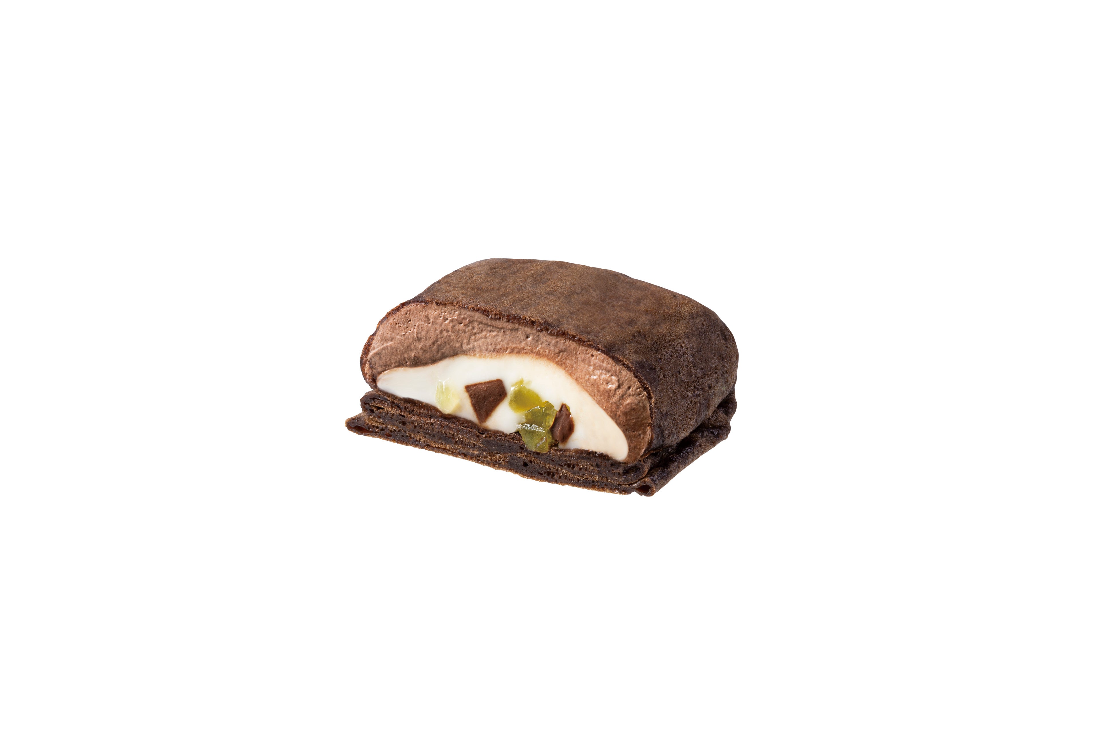 もちもちのショコラクレープ生地にチョコレートと相性バッチリのフレーバーを合わせました。