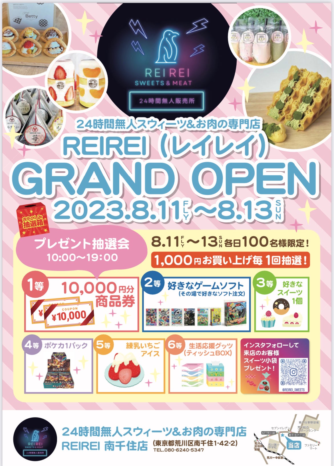 8/11より24時間スウィーツとお肉の無人販売店『REIREI』がオープンいたしました!