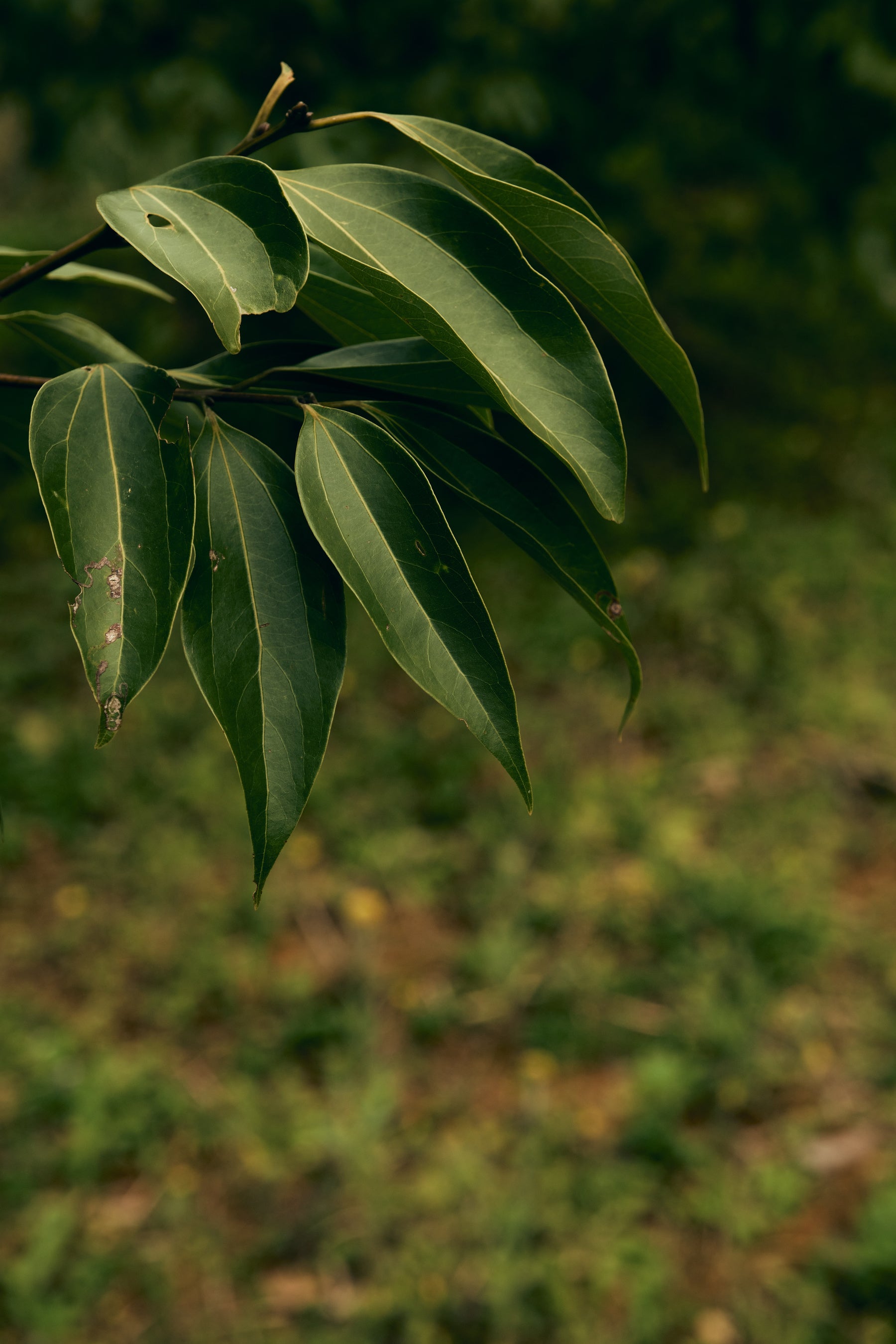 カラキの葉っぱは、弓形で、三本の葉脈が特徴です。日本本州にもヤブニッケイというシナモンの木が生えていますが、それとは別の沖縄にだけ生えている在来種になります。
