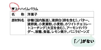 食品表示の「原材料名」に「/(スラッシュ)」がないこと。食品添加物を表記する場合は、「/」などで区切ることが一般的なルール。つまり「/0」は食品添加物が使われないことの証です。