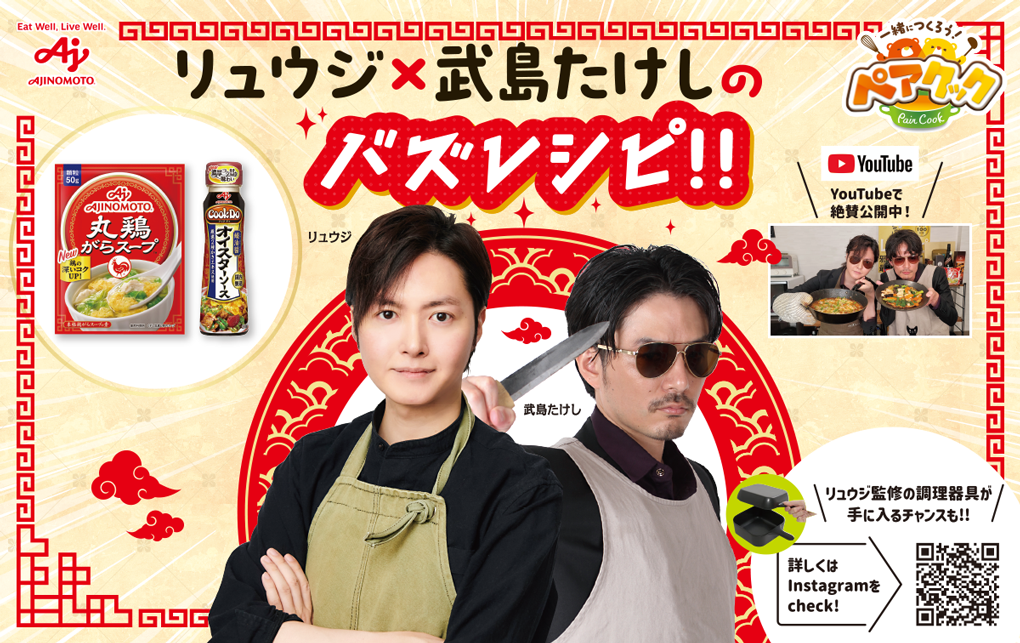 味の素株式会社が展開する、大切な人と一緒に料理をして絆を深める『ペアクック®』企画に、料理研究家の「リュウジ」の“ペア”として、「武島たけし」が登場!