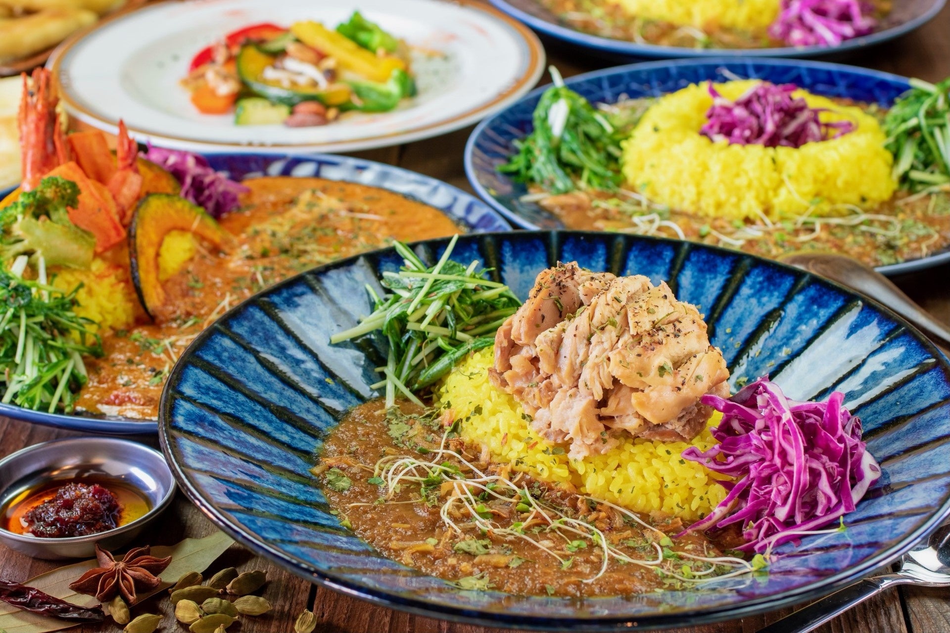 初出店の東京・世田谷の<and CURRY>は、旬の野菜を使ったやさしい味わいのカレーが人気。同店からは夏野菜たっぷりのヴィーガン対応カレーが登場します。パリッとみずみずしいピーマンや、舌の上でとろけるように炒めたなす等定番の夏野菜をはじめ、棗(なつめ)や菊芋、葛といった韓国の市場から取り寄せた食材も使用。乾燥野菜を入れて煮込むことで、油に頼らなくてもしっかりとコクのあるヴィーガンカレーに仕上がっています。