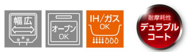 『サーモス デュラブルシリーズ 取っ手のとれる玉子焼きフライパンKEA(KEA-015)』は幅約15㎝と広いので玉子焼きはもちろん、魚や餃子を焼いたり野菜を茹でるなど多用途にお使いいただけます。取っ手のとれる仕様で、オーブン調理も可能です。玉子焼きがきれいに焼け、さらに洗いやすさも考慮し、取っ手の留め具位置にもこだわりました。