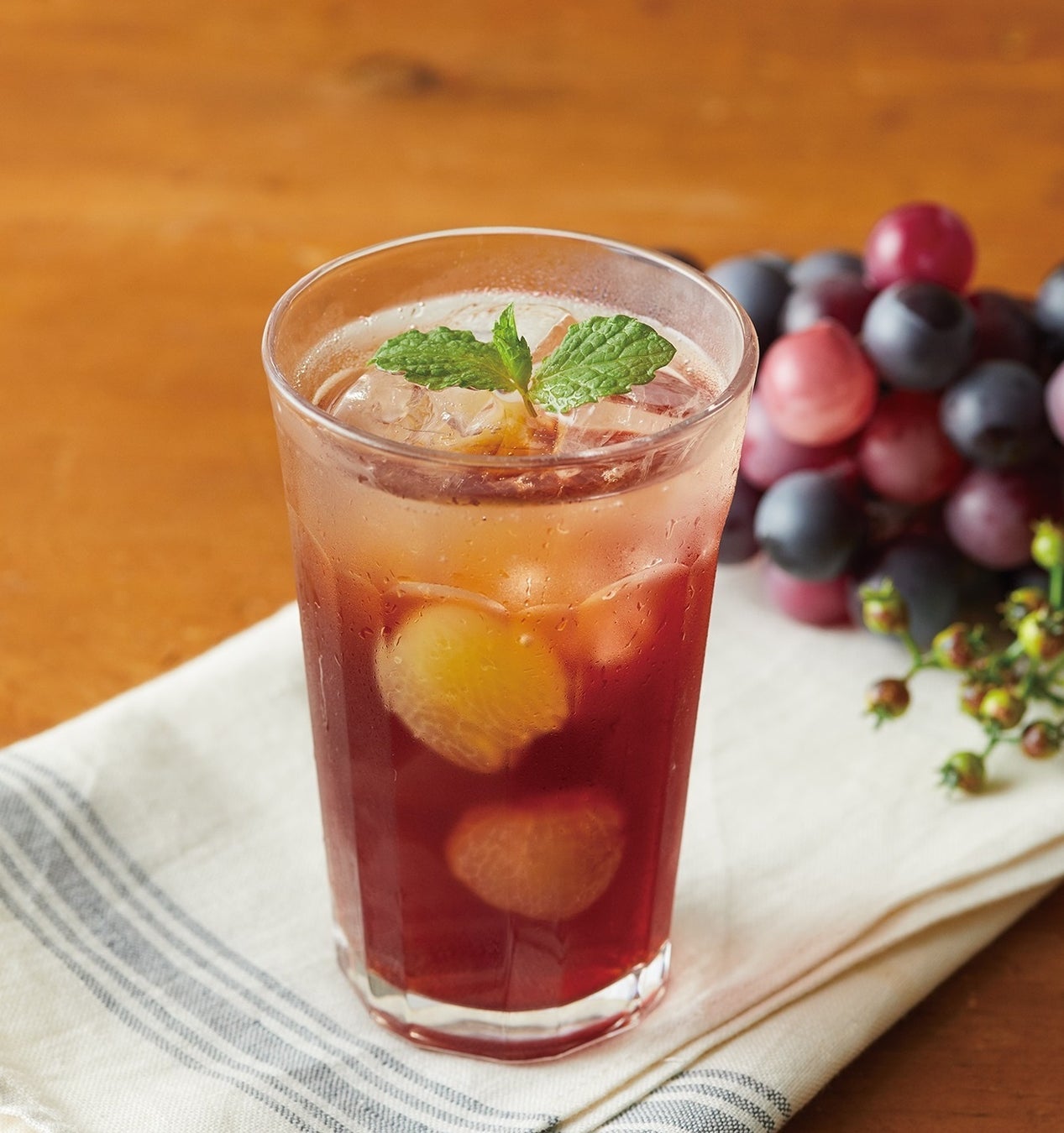 甘みと瑞々しさをイメージした巨峰が香るルイボスティーを使ったジュレをソーダと合わせました。