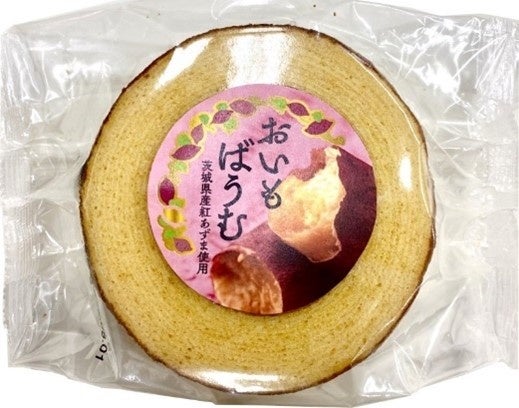 商品特徴:茨城県産紅あずまを生地に練りこんだしっとり食感のバウムクーヘン。