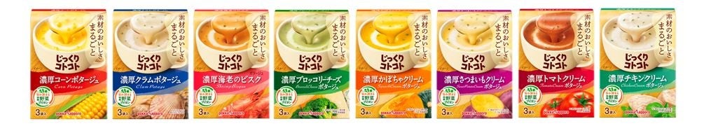 この度、フラッグシップとなる箱入りスープを“素材のおいしさをまるごと楽しめる濃厚ポタージュ”として濃厚さが感じられる味わいにするとともにパッケージも刷新し、8年ぶりにリニューアルします。これまでも主力フレーバーである濃厚コーンポタージュでは、スーパースイートコーン種をあらびきにした具材を入れ、コーン素材本来の甘味をよりひき立たせるなど、濃厚な味わいをお届けするために取り組んできました。今回、素材が溶け込んだくちあたりにもこだわることで、味の濃さだけではない素材感のある濃厚な味わいを実現しました。加えて、スープのかなめとなるブイヨンで、これまで使用してきた香味野菜に加え、捨てられていた玉ねぎやキャベツの芯、規格外の人参など野菜の端材も活用した“特製野菜ブイヨン”を新たに採用することで、より濃厚さに磨きをかけます。「濃厚クラムポタージュ」と「濃厚海老のビスク」には、特製野菜ブイヨンに真鯛の頭骨や中骨を加えた“特製野菜フィッシュブイヨン”を使用しています。パッケージには特製野菜ブイヨンのアイコンと、最大の特長である「素材まるごとのおいしさ」の文言を記載しました。
