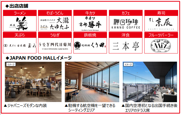 2023年9月1日(金)、第2ターミナル本館2階(出国手続き後エリア)に、”日本”を味わえる飲食店10店舗を集積した飲食店フロア「JAPAN FOOD HALL」がオープンいたします。
