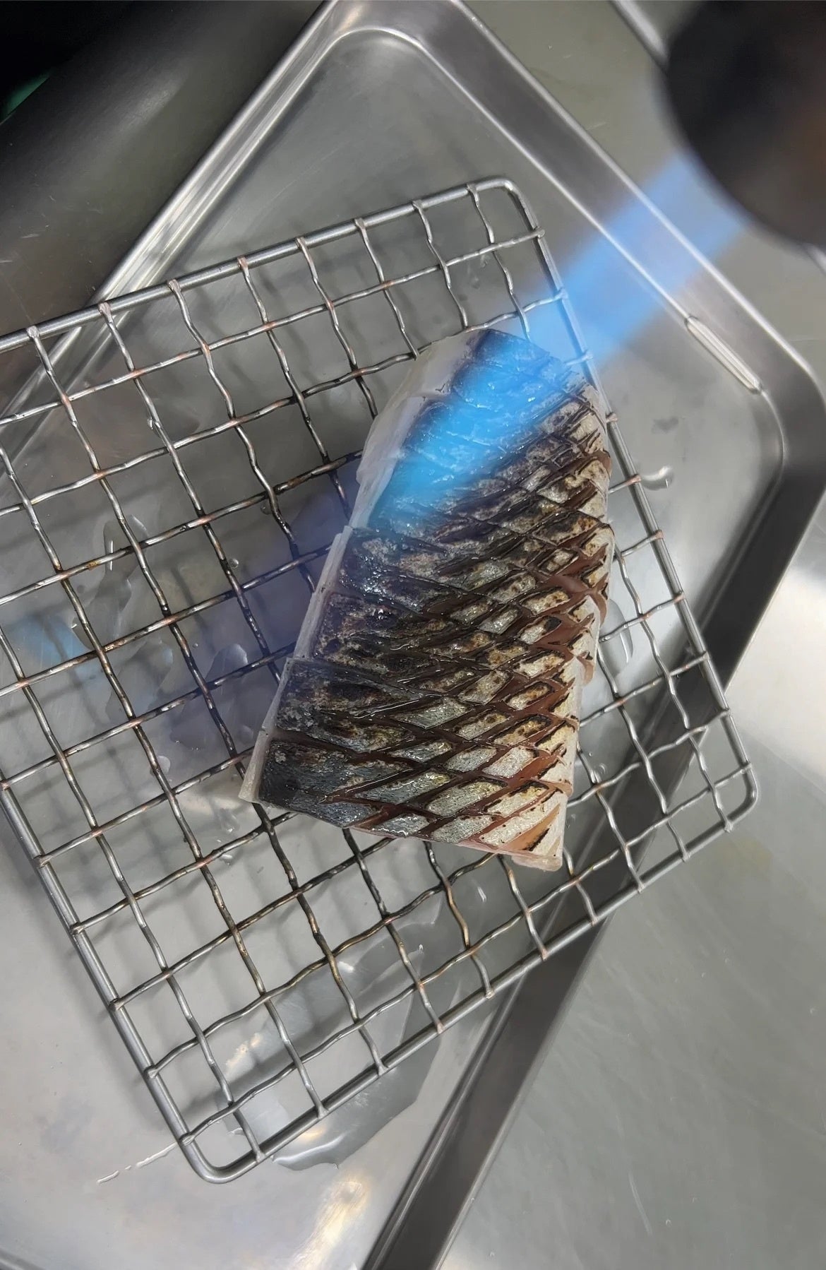 炙るとより鯖の旨味が際立ってさらに美味しくいただけます。