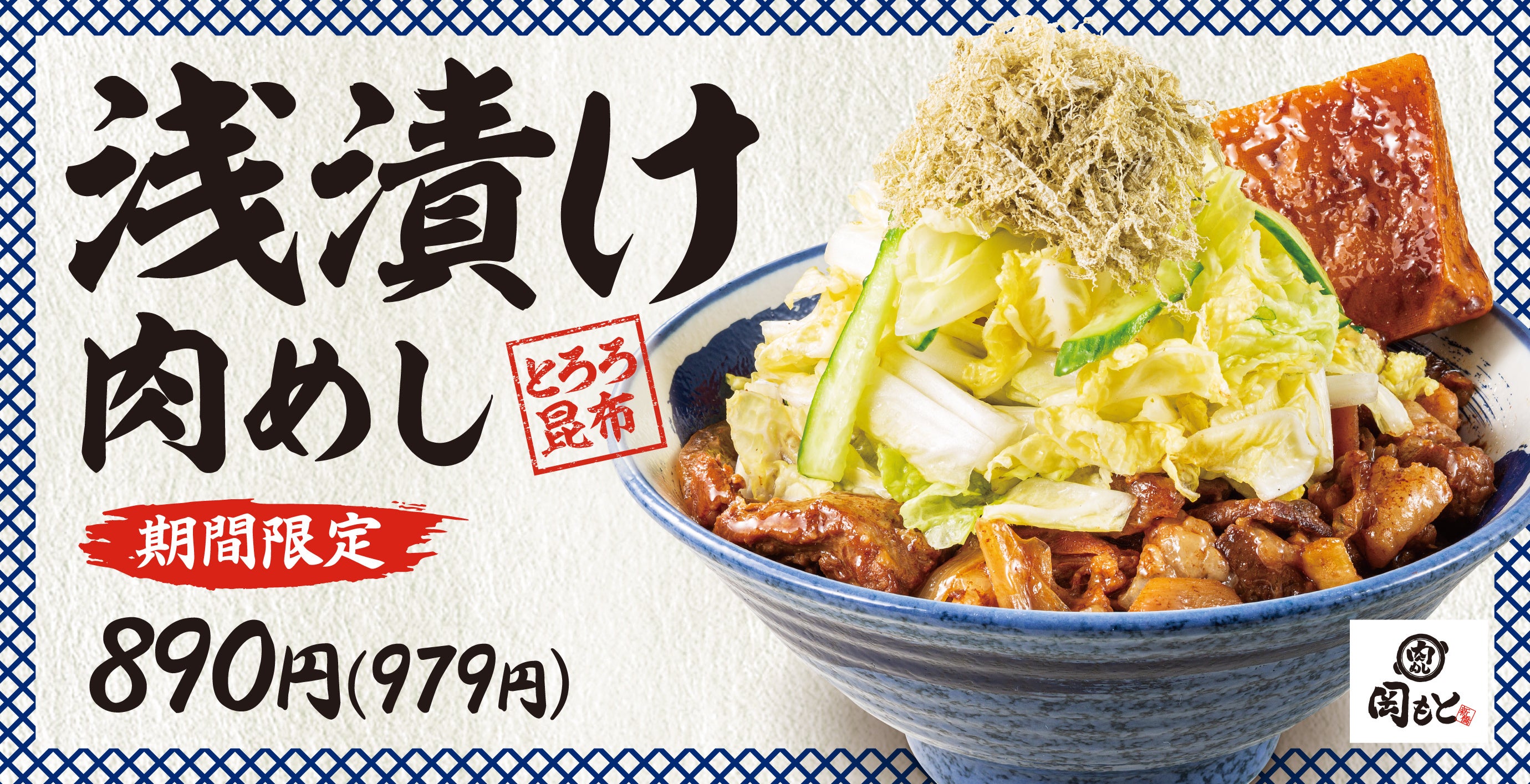 カツ丼でも牛丼でも親子丼でもない。新しい肉丼、肉めしの専門店「肉めし岡もと」にて期間限定メニュー「浅漬け肉めし」を2023年8月23日(水)より販売開始いたします。