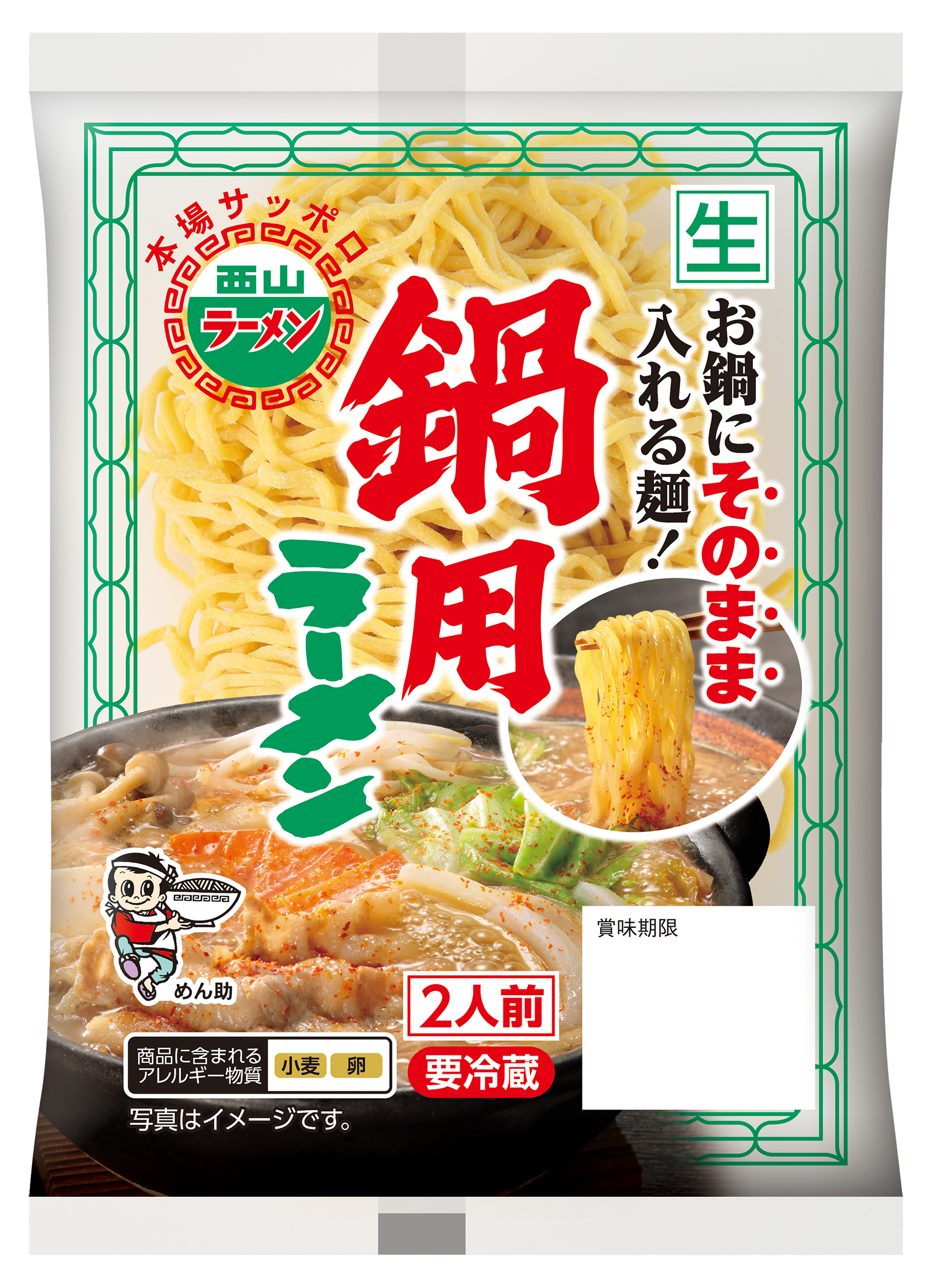 〆のラーメンは、新発売の「鍋用西山ラーメン 2人前」で!お鍋にそのまま入れられる、熟成ちぢれ麺です。