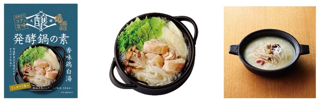 自社製造の酒粕(国産米100%使用)を原料とした大関独自の発酵調味料を使用しているため、自然なコクと旨味を手軽に味わえます。材料を入れて5分間煮込むだけで本格的な味わいの発酵鍋が楽しめます。