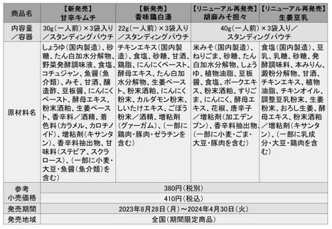 第一弾で発売した「胡麻みそ担々」「生姜豆乳」に加え、新たに「甘辛キムチ」「香味鶏白湯」が仲間入り。4種類の味わいからお好みに合わせてお選びいただけます。食べたい時に食べたい量を調理できる個食タイプのため、単身や少人数世帯の方にもおすすめです。