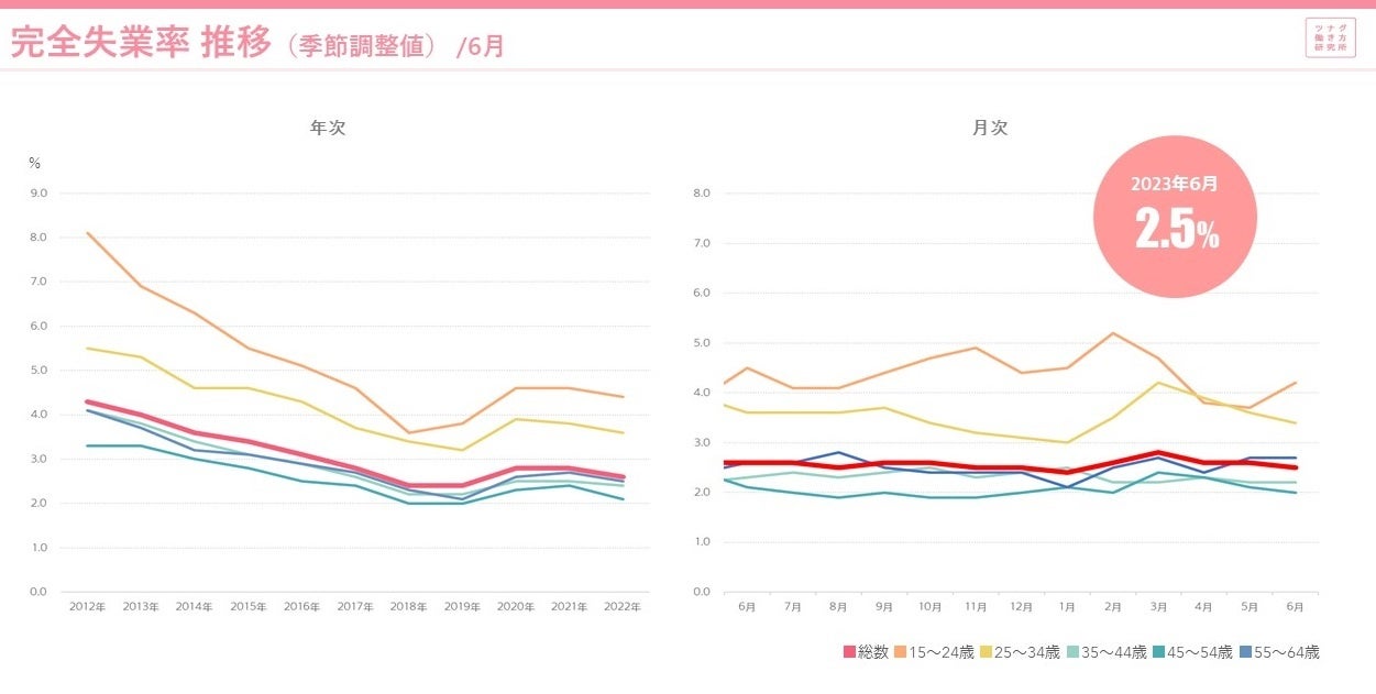 ■2.完全失業率は2.5%。前月比、前年同月比ともに-0.01ポイント