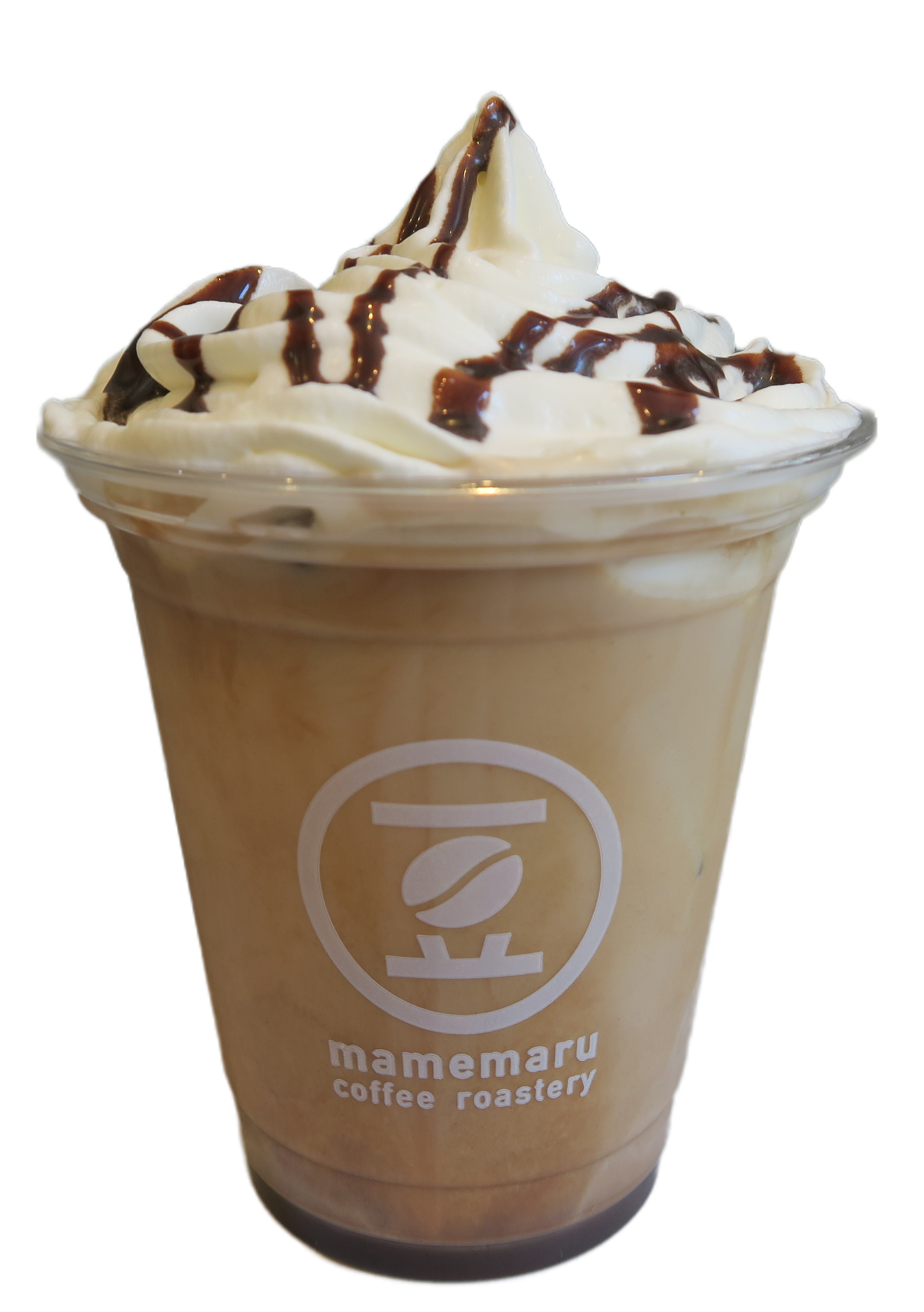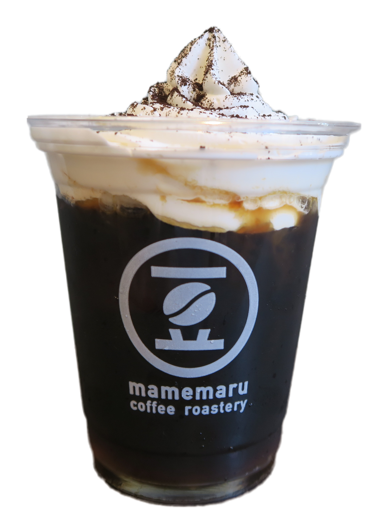 深煎りの豆で濃厚に抽出したコーヒーで作る豆丸謹製のコーヒーゼリーを、豆丸特選アイスブレンドに入れました。ホイップクリームの甘さと極細挽きしたコーヒーパウダーの風味と苦味が絶妙にマッチした新食感の「飲むコーヒーゼリー」です。