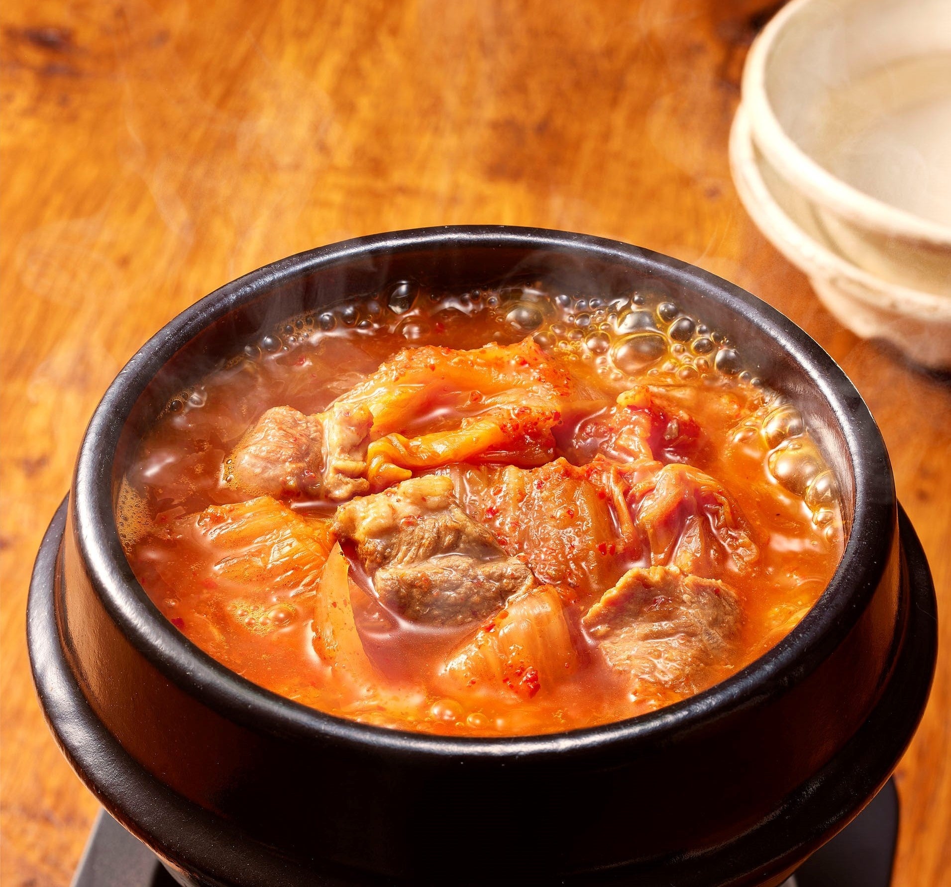 酸味と旨みが効いた韓国産熟成白菜キムチ、豚肉、玉ねぎが入った具入りスープです。