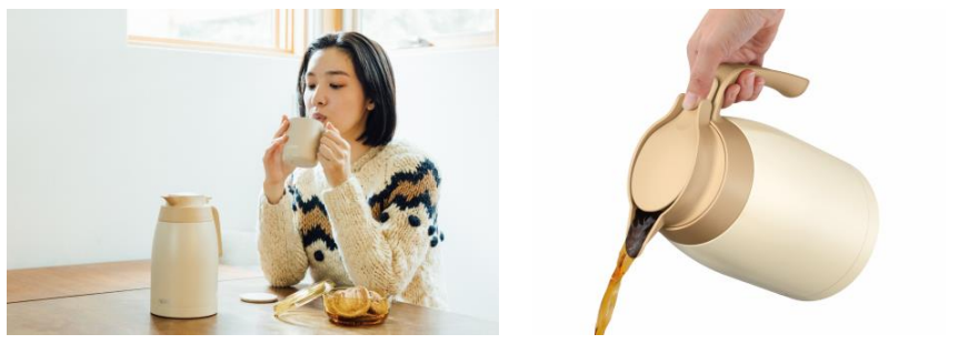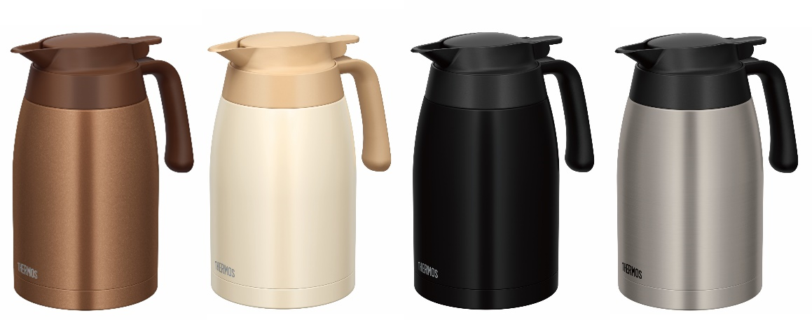 サイズは、1.0L、1.5L、2.0Lを展開。カラーは、ご自宅のインテリアに合わせてお選びいただけるカラーラインアップにリニューアル。落ち着いたカラーでインテリアになじみやすいブラウンゴールドやクリームホワイト、シックな色合いで高級感漂うマットブラック、ステンレスマットを展開します。