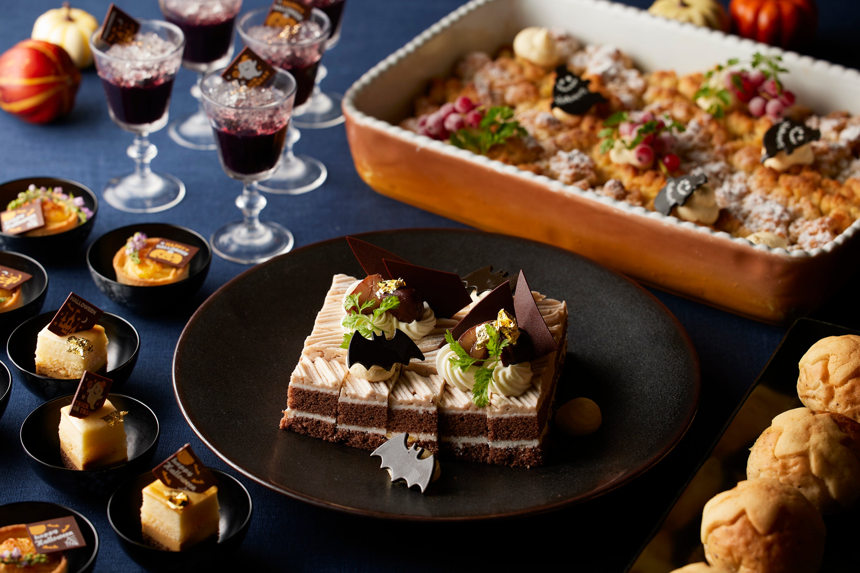 シェフサービスでご提供するローストビーフは、赤身と脂の絶妙なバランスをお楽しみいただけるよう、じっくりと低温調理で柔らかく仕上げました。オーストラリア産サーロインに加え、ランチでは国産牛もも肉、ディナーでは和牛もも肉のローストビーフ2種類を贅沢に食べ比べいただけます。定番のグレービーソースやきのこを使用したクリーミーデュクセルソースで秋の味覚と上質な肉の旨味のハーモニーを存分にご堪能ください。また、旬の秋鮭やきのこ、銀杏と香ばしい焦がしバター醤油ソースを合わせた「オータムサーモンのホイル包み」や、とろけるような食感のスペイン産イベリコ豚を秋野菜と柚子を合わせたソースで爽やかに仕上げた「低温でローストしたイベリコ豚のグリル秋野菜と柚子ソース」など、秋の味覚をふんだんに使用したメニューを揃えました。デザートには、濃厚なマロンクリームを絞った「モンブランケーキ」やディナー限定の「スイートポテト」など、秋ならではのスイーツをご用意し、10月にはハロウィン仕様に仕立ててご提供します。