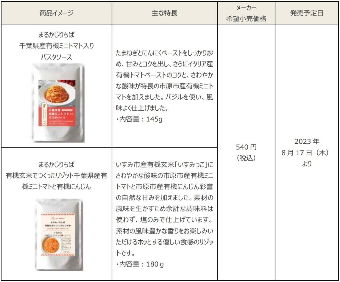 これまで「まるかじりちば」シリーズとして6アイテム発売してきましたが、(現在3アイテムを販売)今回は第4弾として新たに2商品が加わっております。千葉県内の無印良品9店舗をはじめ、石井食品の直営店2店舗にて展開をスタートいたします。