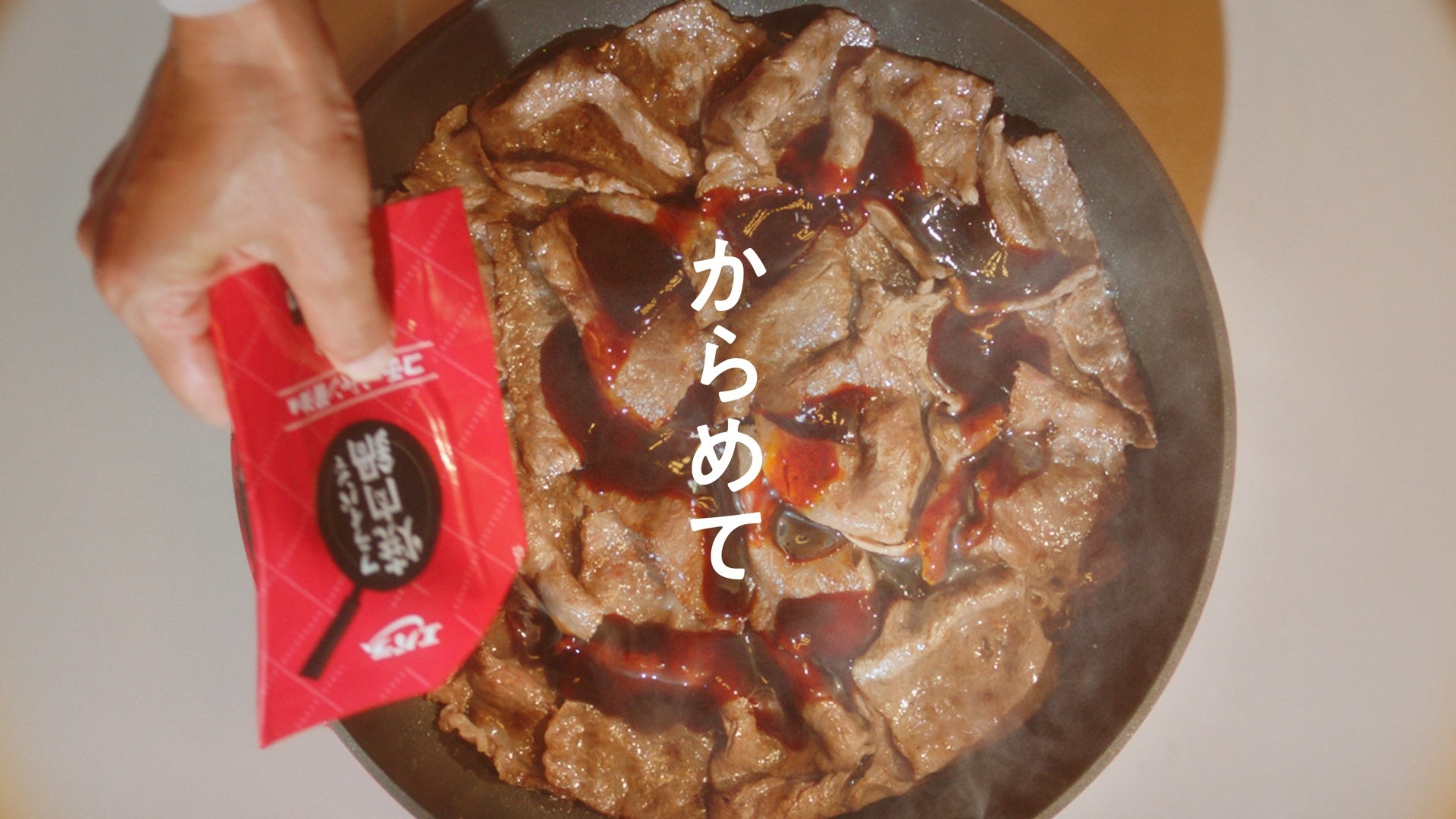 新CM『フライパンのワンマンショー』篇は、コック帽姿でフライパンを手にした瀬戸さんがステージに見立てたキッチンに登場する、まるでショーのようなシーンからスタートします。「肉を焼いて、たれを絡めて、野菜と煮込むだけ」という、焼肉鍋の調理がフライパンひとつで簡単にできることを説明し、ワンマンショーのクライマックスでは「フライパンのまま」食卓へ並べ、調理から配膳までがより手軽であることをアピールします。「鍋なのか?焼肉なのか?」と瀬戸さんが画面越しに問いかけてきます。ごはんが止まらない、その味わいを楽しむ瀬戸さんにもご注目ください。