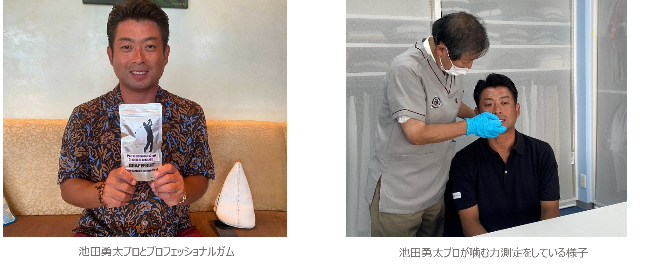 実際に完成したプロフェッショナルガムを受け取った池田プロからは、「まずは、このようにプロフェッショナルガムを作成いただき大変感謝しています。最高位を表すゴールド色の名前が刻まれたパッケージで縁起の良いものをいただきました。日本ツアーの前半は思うような成績が出せず、今はチャレンジングなシーズンとなっていますが、プロフェッショナルガムをひとつのキーとして、残りのシーズンを一緒に戦い抜きます。僕自身、例年夏から秋にかけ良いシーズンになることもあるので、調子をしっかりと上向きにして、優勝した時にこのガムを噛んでいるシーンを見せることができれば、作成していただいた方々へ恩返しになると思っています」と感謝の気持ちと熱い意気込みをいただきました。