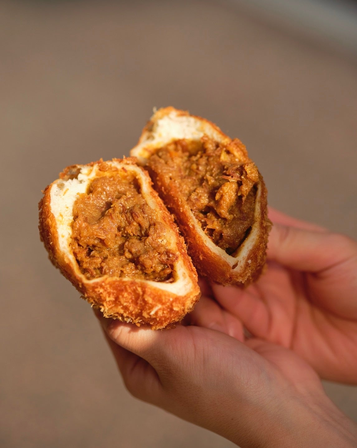 カレーパンの具材はカレーのトッピングからヒントを得ながら、様々なトッピングとカレーを掛け合わせて数百種類の具材と数十種類のカレーの掛け合わせを何度も試作を繰り返しようやく完成した20種類のカレーの具材を日替わりメニューとして提供させて頂きます。