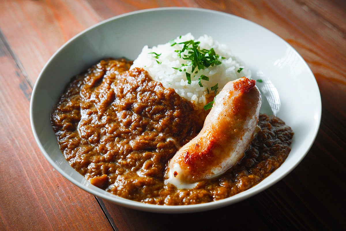 よなよなカレーは、通称”飴玉”と呼ばれる飴色になるまで炒めた玉ねぎをたっぷり使用しているのが特徴です。”飴玉”を加えることで、カレーに深い甘味とコクをもたらします。それに特製スパイス、人参、おろしにんにく等を加えてじっくり煮込んで仕上げています。ラクレットソーセージは、国産豚ひき肉に大きめにカットしたチーズ「ラクレット」をたっぷり詰め込んでいます。熱を加えると中からチーズが溶け出します。