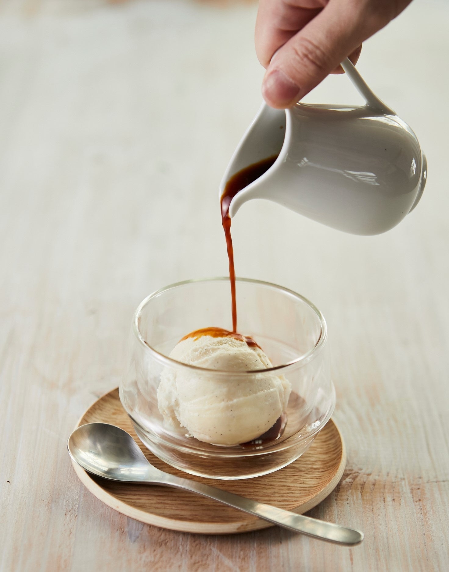 冷たいオリジナルアイスに温かいエスプレッソをかけ、混ぜながら食べる絶品アフォガート