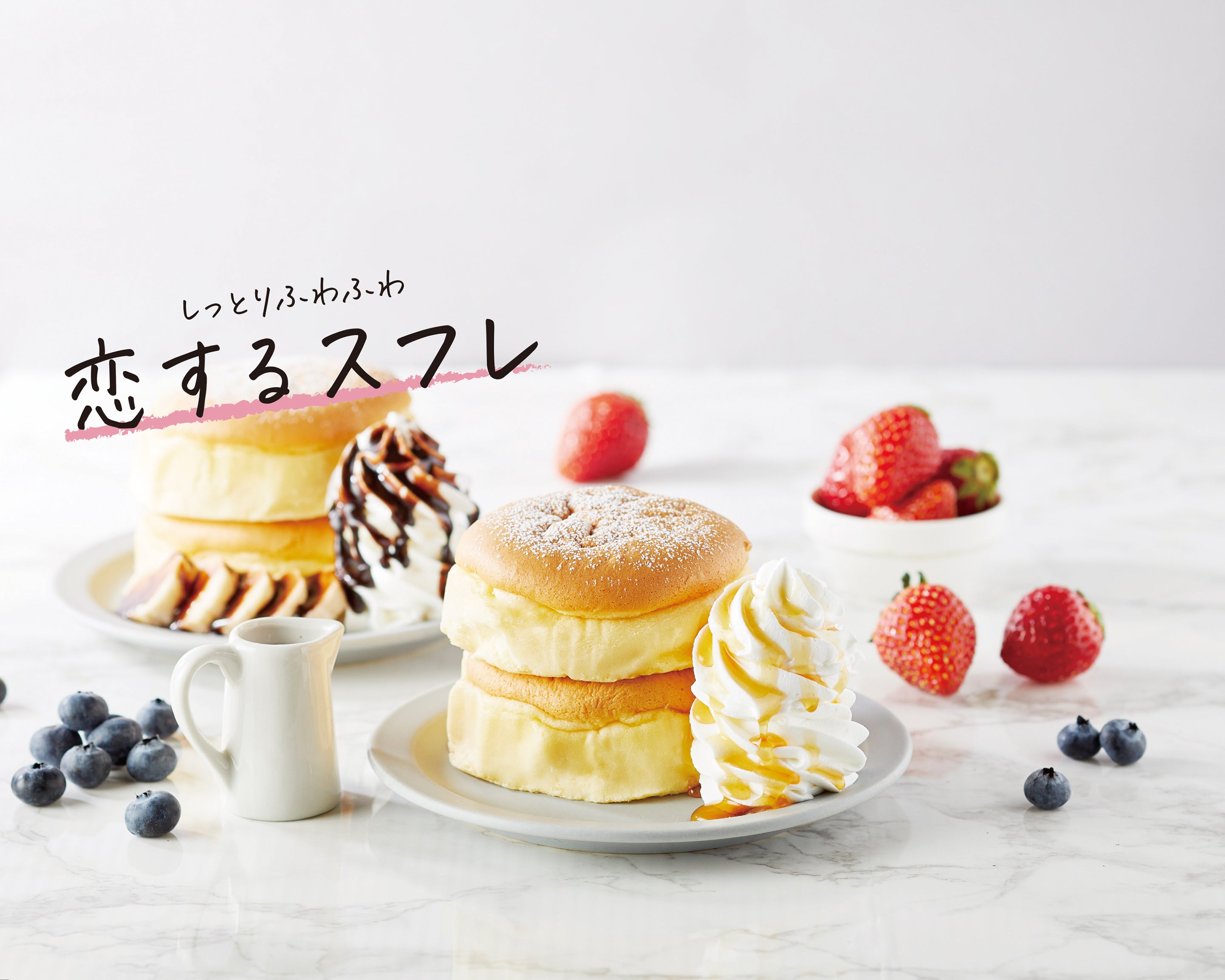 コンセプト「ほどよい甘さのスフレパンケーキと生クリームを合わせて、お家でプチ贅沢スイーツ。」