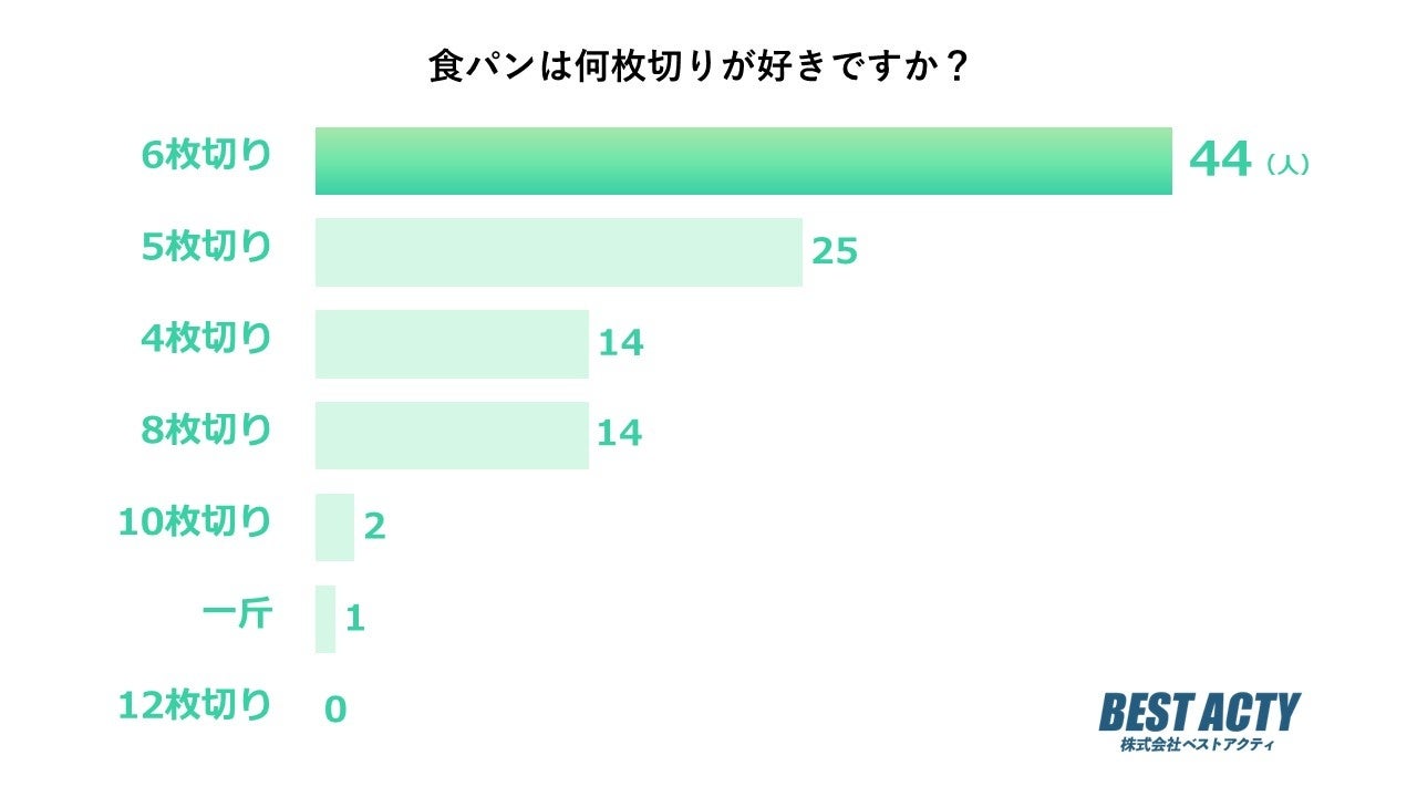 アンケートの結果、「6枚切り」と答える人が最も多い結果となりました。
