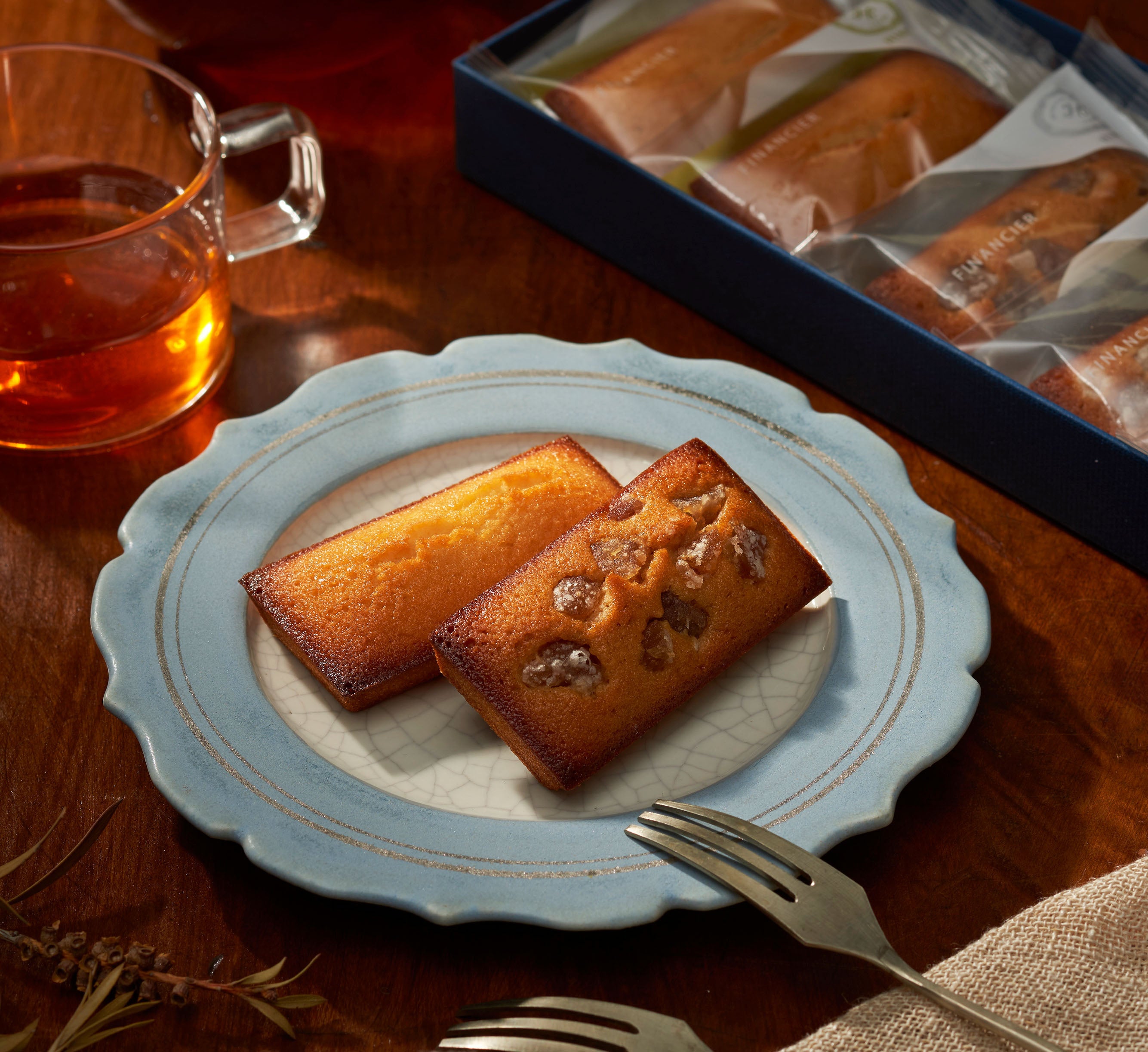 選び抜いた素材で丁寧に、しっとり焼き上げたフィナンシェ。 上品な味わいの ” 和三盆 ”と季節の味わいの ” マロン ”を詰め合わせました。