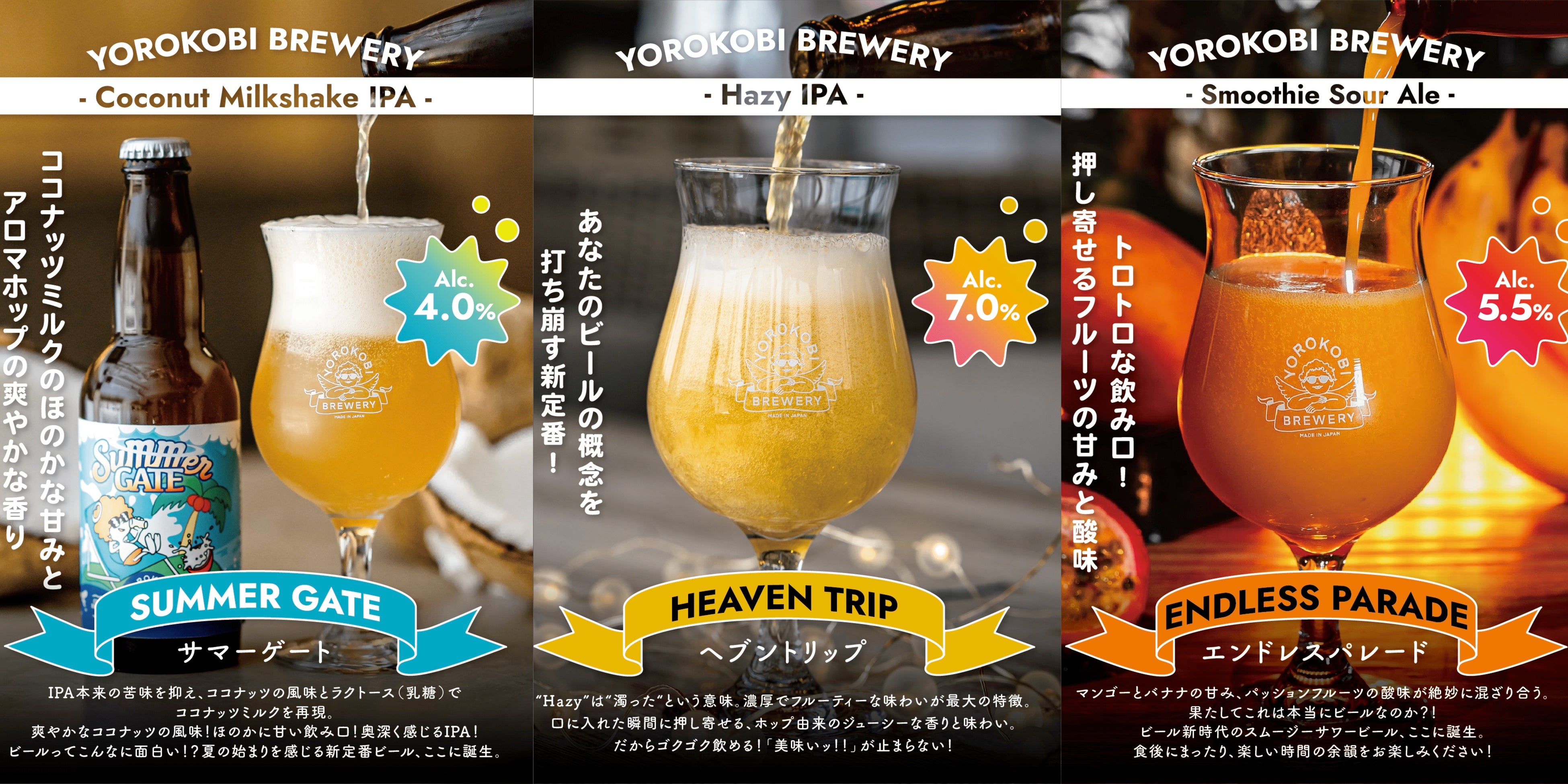 「YOROKOBI BREWERY」は、『ビールは喜びだ。』をコンセプトに、ビール好き20代が立ち上げた新興クラフトビールブランドです。「美味しく」、「面白く」、「新しい」をテーマにした商品開発と、他業種とのコラボによりお客様と新しい接点を築き、人と人の繋がりの創造によって世の喜びの総量を増やしていく、喜び創造メーカーです。