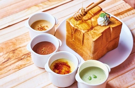 アイスやホイップクリームが少なくなってきた。という方には、追いソースもご用意。ショコラ、塩キャラメル、クレームブリュレのソースをたっぷりトーストにかけて最後まで美味しくたべられます。